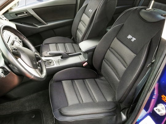 - Materiał wykończeniowy - dzianina charakteryzuje się elastycznością oraz podwyższoną odpornością na ścieralność oraz zużycie. Struktura materiału pozwala na lepsze dopasowanie pokrowców do oryginalnej tapicerki.