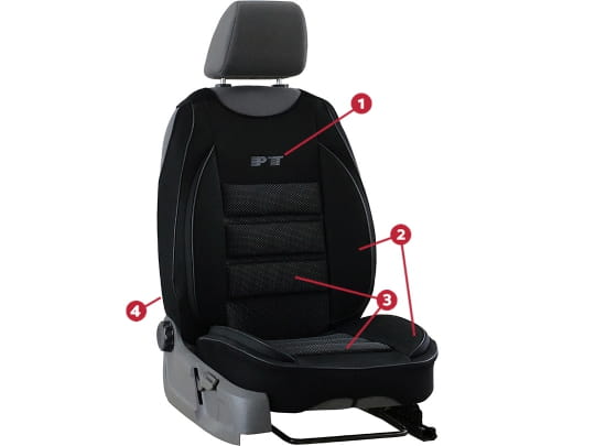 Dzięki zastosowaniu dodatkowych, bocznych poduszek zarówno w oparciu jak i w siedzisku, mata zapewnia jeszcze większą wygodę podczas podróżowania. Mata zabezpiecza, chroni oraz przedłuża żywotność oryginalnych foteli samochodowych.